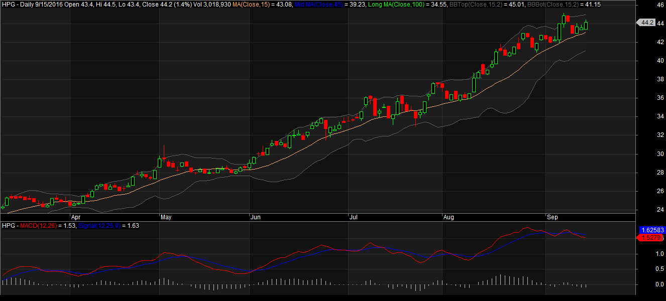 Đồ thị cổ phiếu HPG phiên giao dịch ngày 15/09/2016. Nguồn: AmiBroker Đăng bởi Nguyễn Văn Nguyên lúc 15/09/2016 2016-09-15T21:52:47+07:00 Lượt xem: 35 - Ngày: 15/09/2016 Đồ thị cổ phiếu HPG phiên giao dịch ngày 15/09/2016. Nguồn: AmiBroker