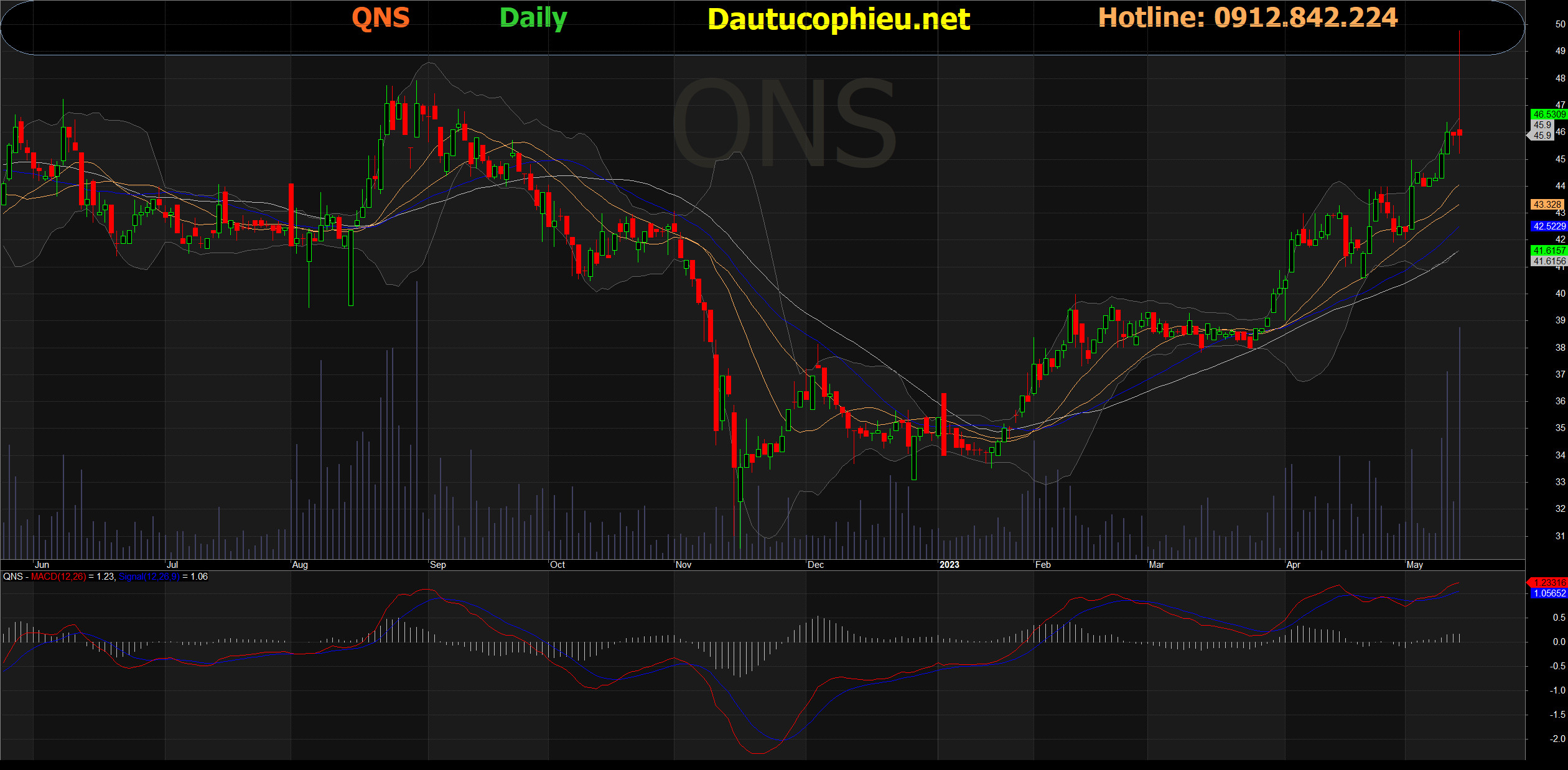 Đồ thị cổ phiếu QNS phiên giao dịch ngày 17/05/2023. Nguồn: AmiBroker