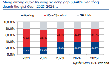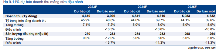 HSC hiện thận trọng hơn đối mảng sữa đậu nành và hạ 9-11% dự báo doanh thu thuần trong giai đoạn 2023-2025 sau khi điều chỉnh giảm dự báo sản lượng tiêu thụ.