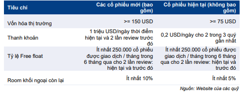 Bảng 1: Tiêu chí của giỏ chí số MVIS Vietnam Index