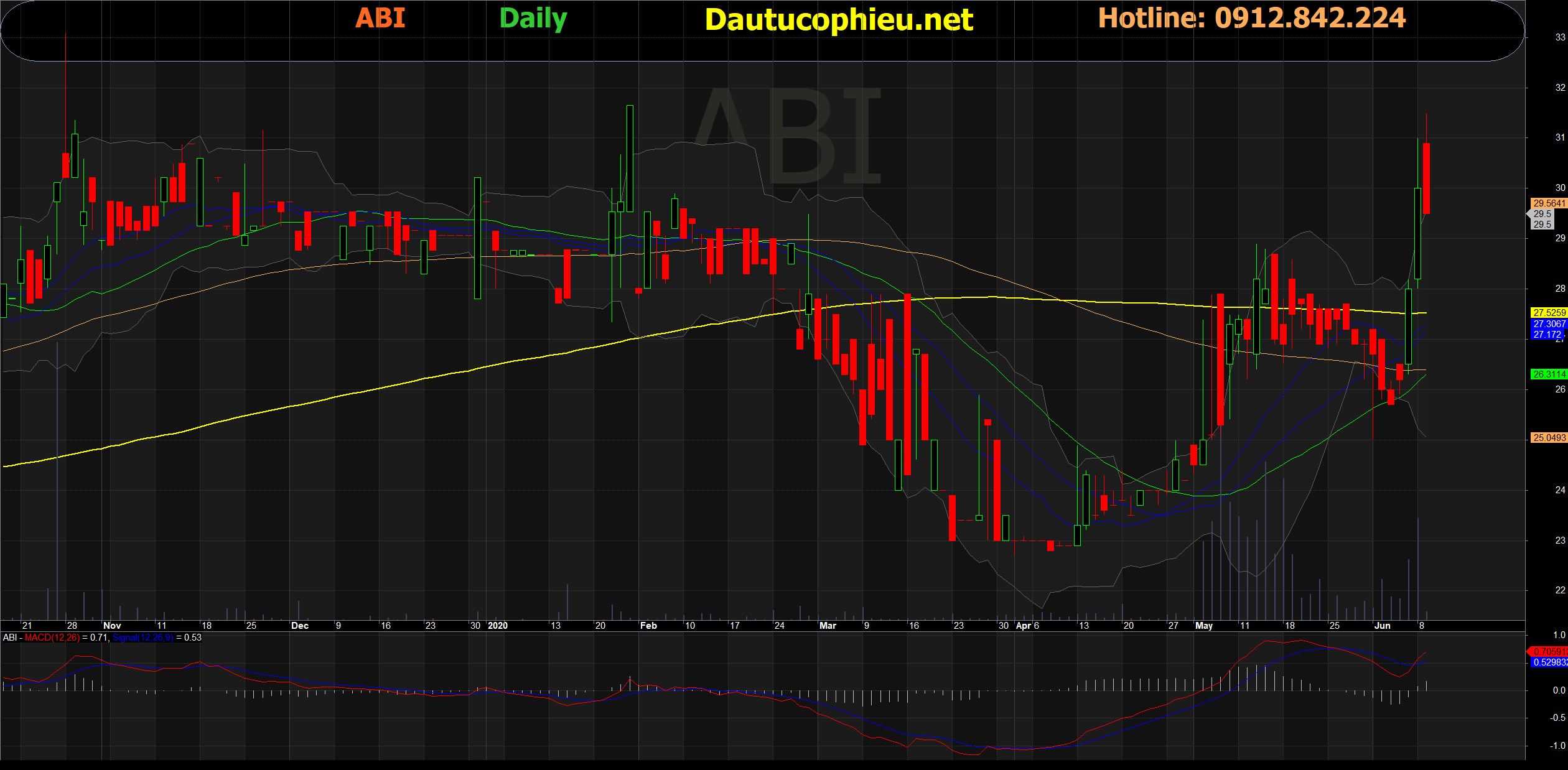 Đồ thị cổ phiếu ABI phiên giao dịch ngày 08/06/2020. Nguồn: AmiBroker