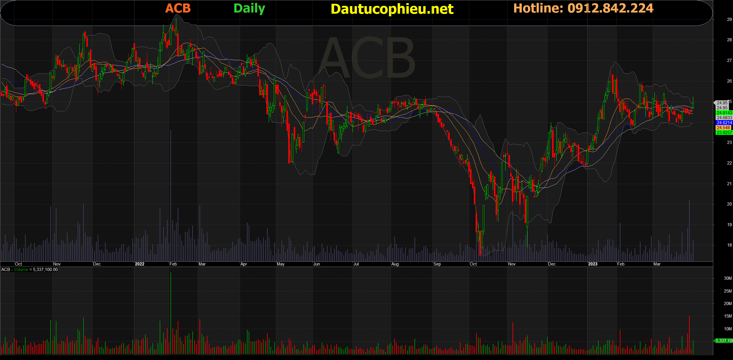 Đồ thị cổ phiếu ACB phiên giao dịch ngày 31/03/2023. Nguồn: AmiBroker