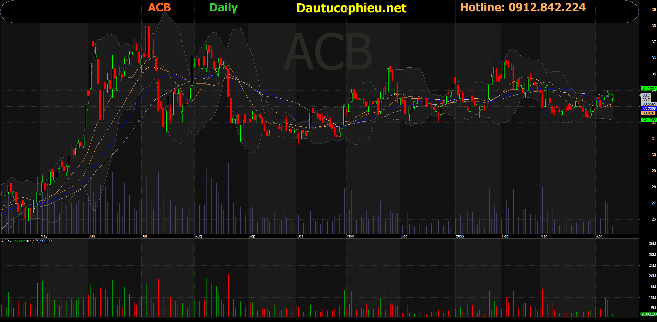 Đồ thị cổ phiếu ACB phiên giao dịch ngày 13/04/2022. Nguồn: AmiBroker