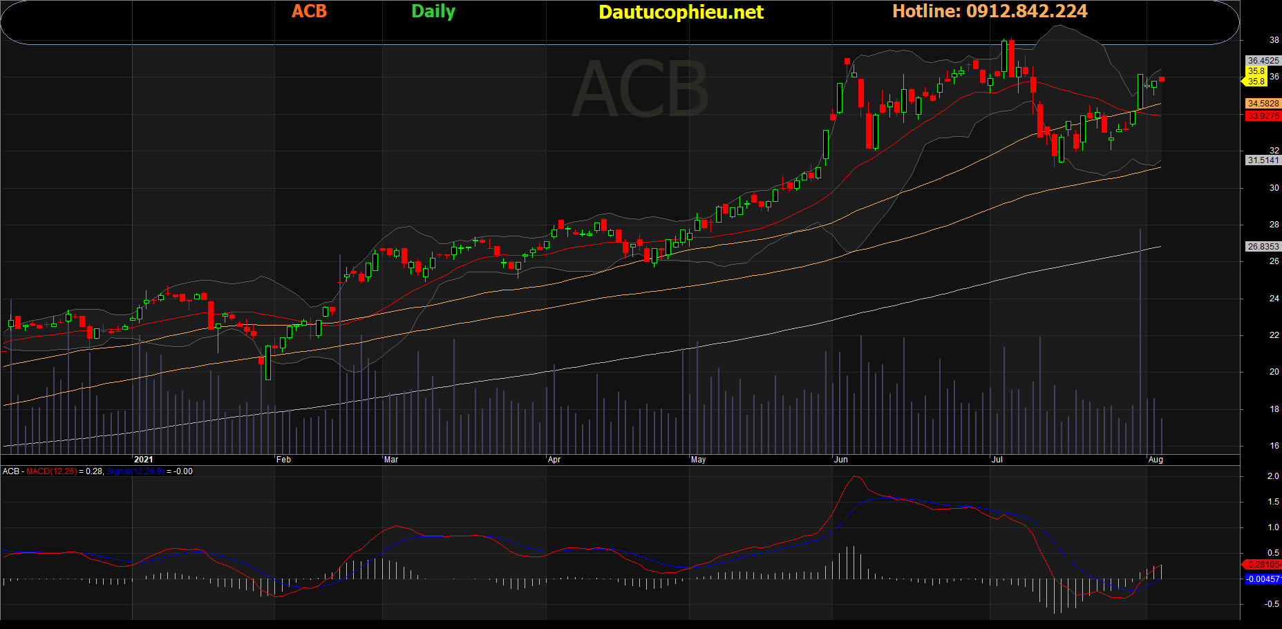 Đồ thị cổ phiếu ACB phiên giao dịch ngày 04/08/2021. Nguồn: AmiBroker