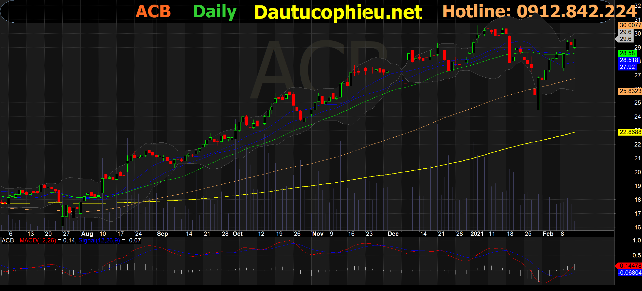 Đồ thị cổ phiếu ACB phiên giao dịch ngày 19/02/2021. Nguồn: AmiBroker