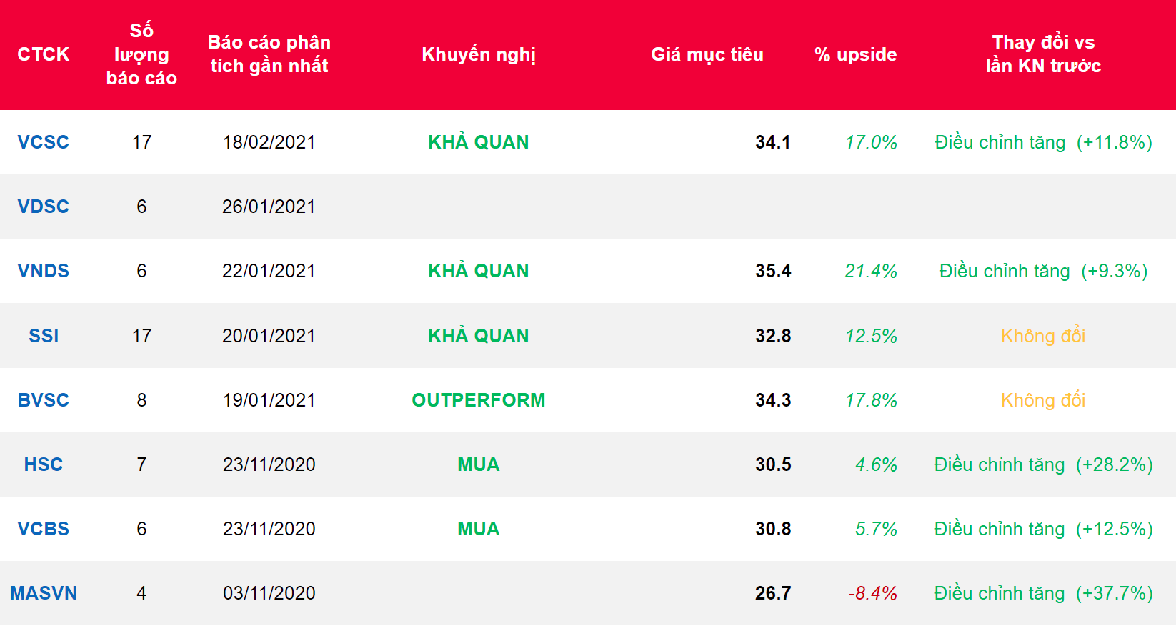 - Chúng tôi nâng dự báo LNST sau lợi ích CĐTS cốt lõi 2021 thêm 14,6% chủ yếu do dự phóng NIM cao hơn 17 điểm cơ bản đạt 3,77% cùng với dự báo chi phí dự phòng thấp hơn 3,6% sau giả định các khoản vay tái cơ cấu theo TT01 còn 25% từ 40% trước đây.