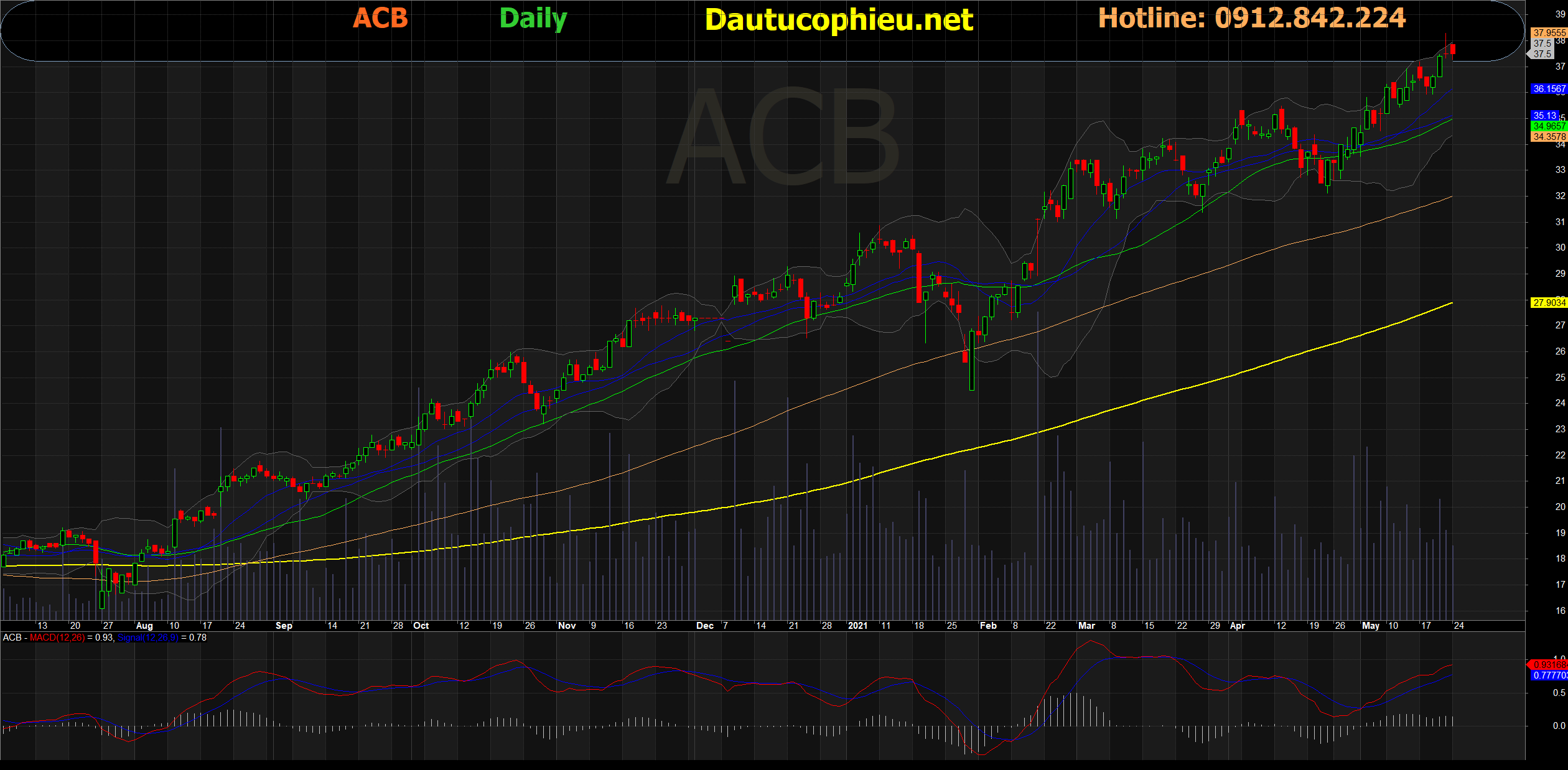 Đồ thị cổ phiếu ACB phiên giao dịch ngày 24/05/2021. Nguồn: AmiBroker