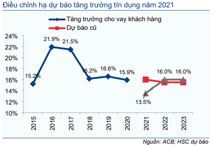Hạ giả định tăng trưởng tín dụng năm 2021 nhưng tăng cho năm 2022 và 2023