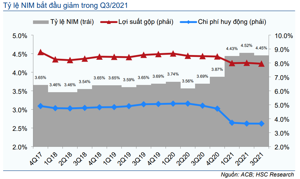 Trong Q3/2021, thu nhập lãi của ACB đã giảm 203 tỷ đồng vì Ngân hàng hỗ trợ khách hàng chịu ảnh hưởng của dịch Covid-19; tương đương với mức giảm lãi suất là khoảng 0,3%/năm.