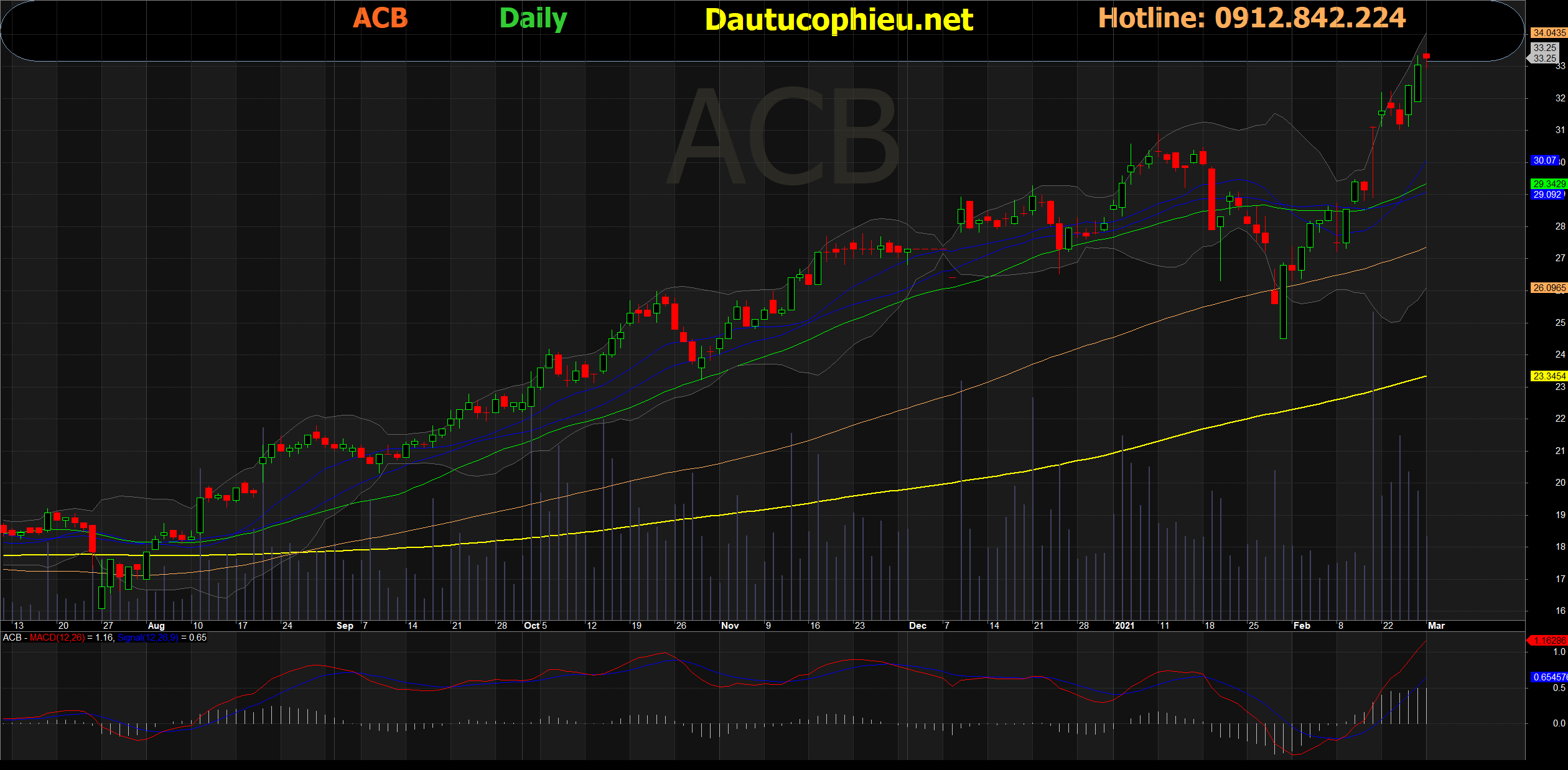 Đồ thị cổ phiếu ACB phiên giao dịch ngày 01/03/2021. Nguồn: AmiBroker