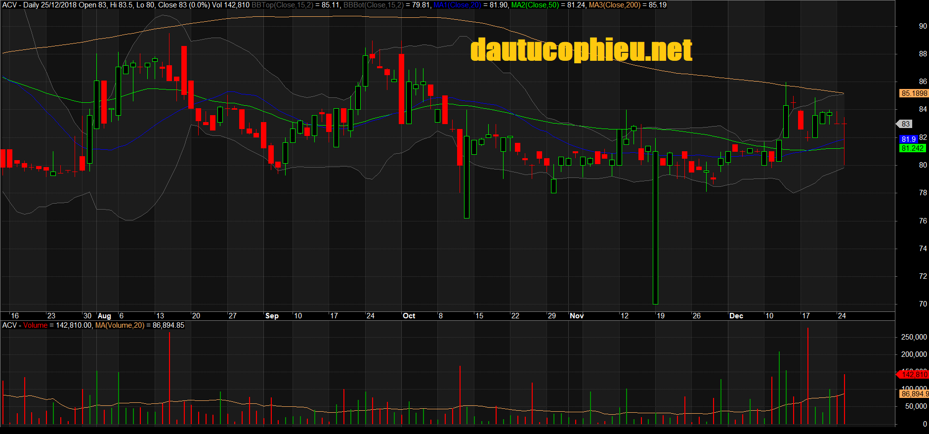 Đồ thị cổ phiếu ACV phiên giao dịch ngày 25/12/2018. Nguồn: AmiBroker