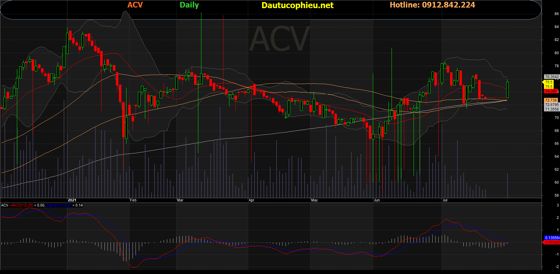 Đồ thị cổ phiếu ACV phiên giao dịch ngày 30/07/2021. Nguồn: AmiBroker