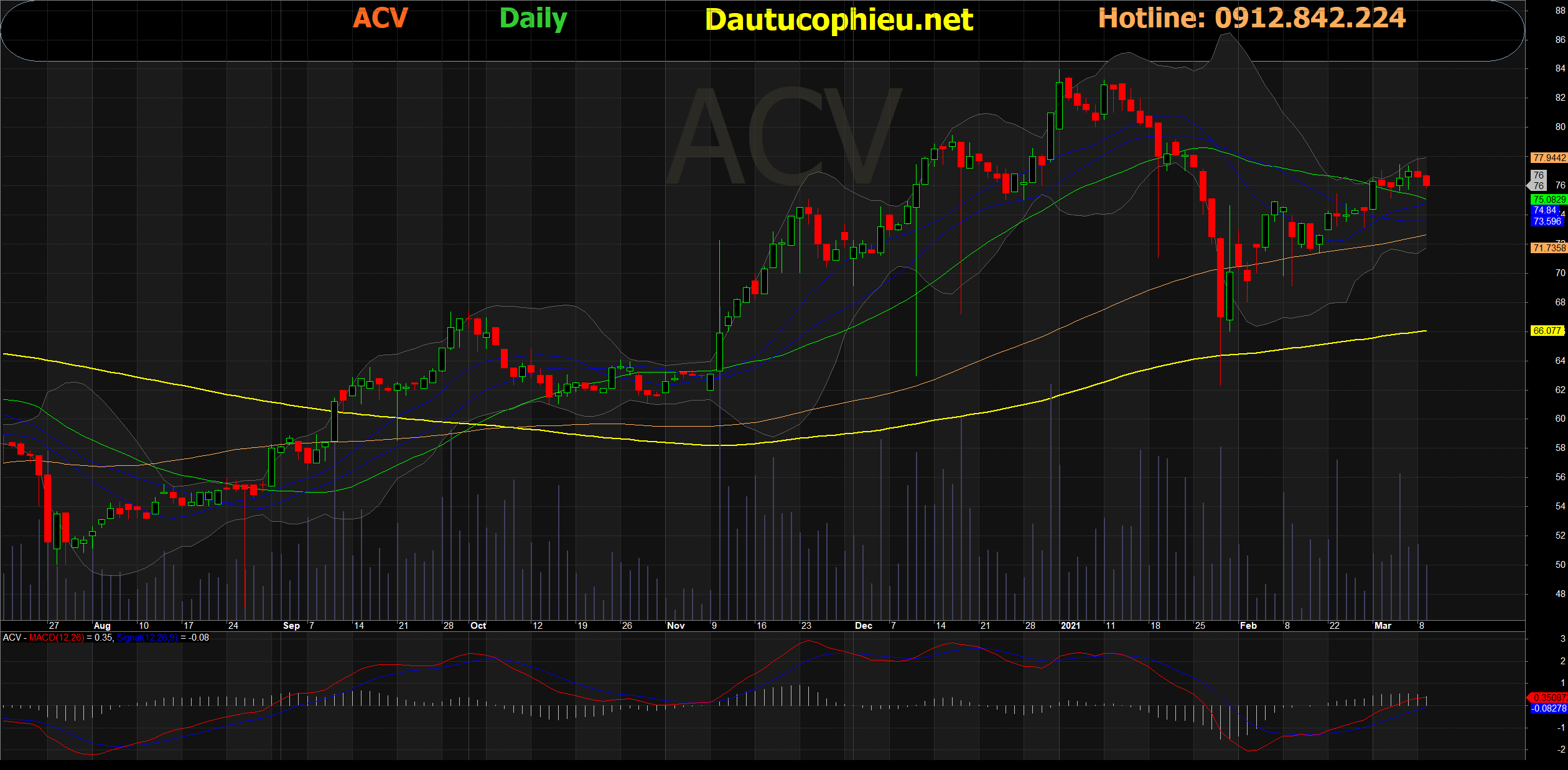 Đồ thị cổ phiếu ACV phiên giao dịch ngày 09/03/2021. Nguồn: AmiBroker