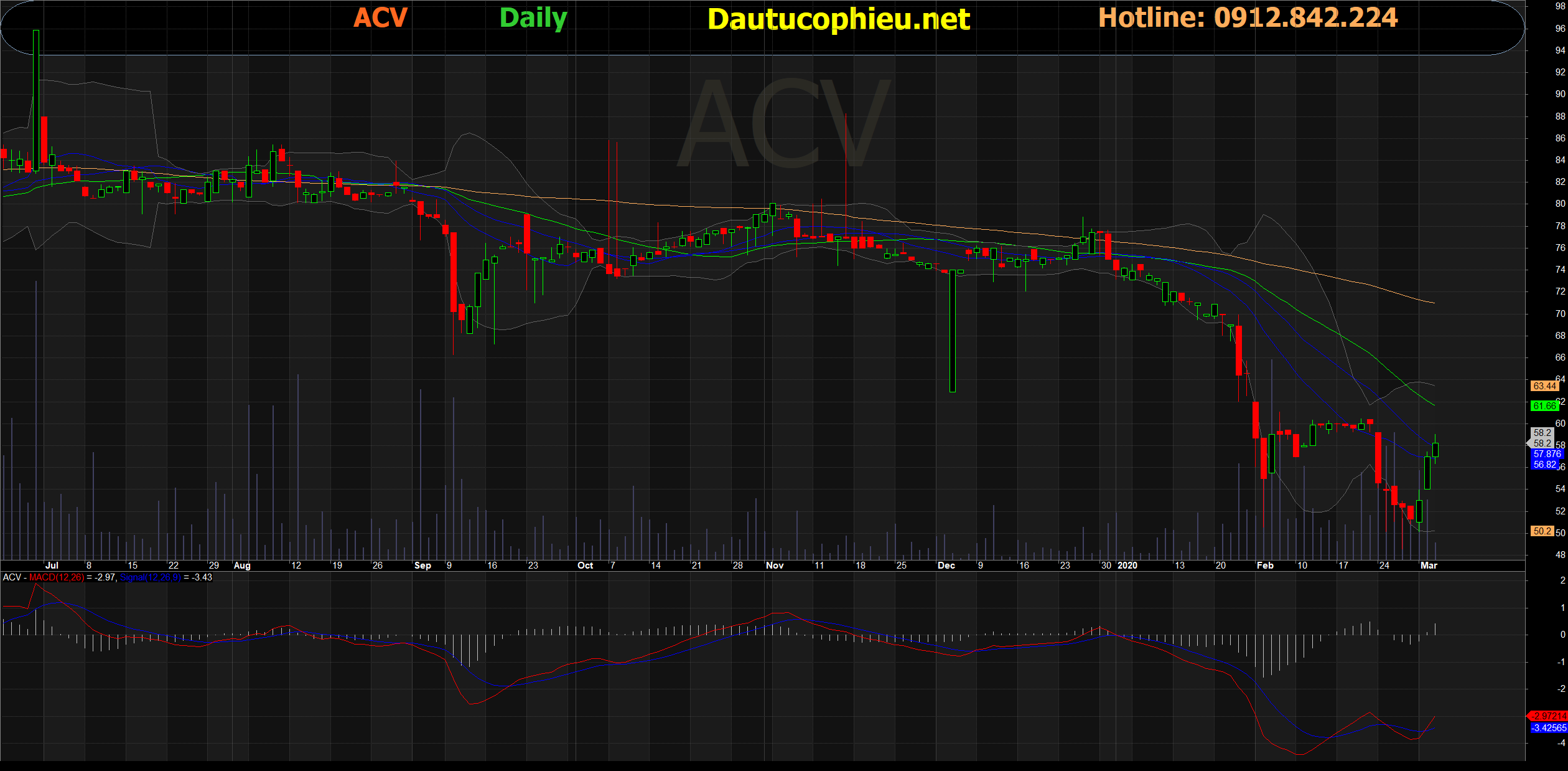 Đồ thị cổ phiếu ACV phiên giao dịch ngày 04/03/2020. Nguồn: AmiBroker.