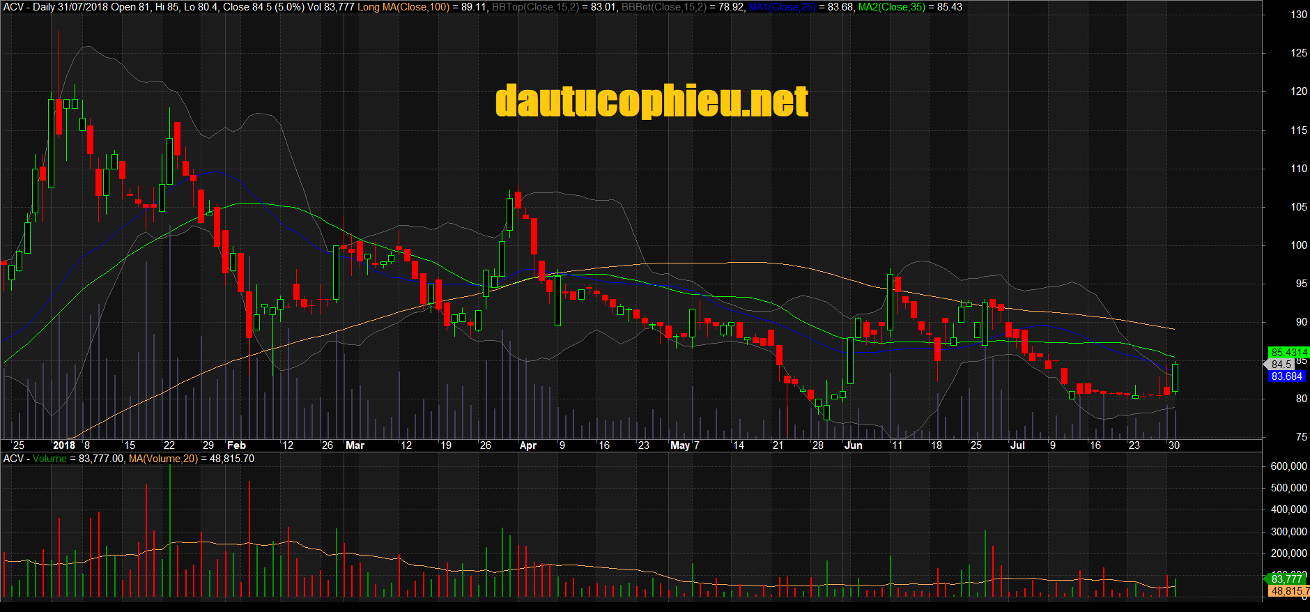 Đồ thị cổ phiếu ACV phiên giao dịch ngày 31/07/2018. Nguồn: AmiBroker