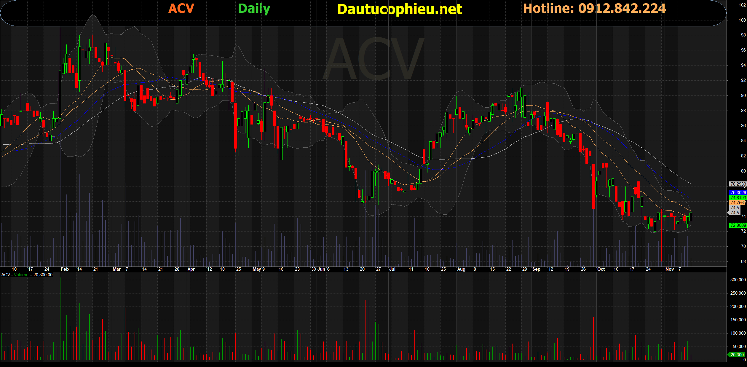 Đồ thị cổ phiếu ACV phiên giao dịch ngày 11/11/2022. Nguồn: AmiBroker