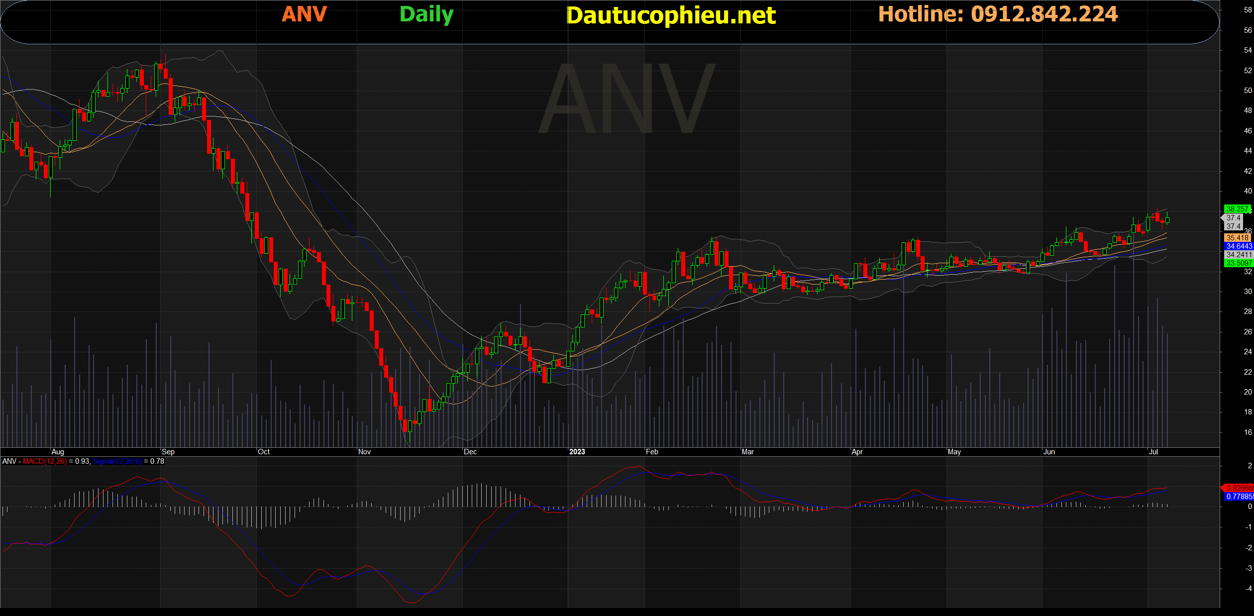 Đồ thị cổ phiếu ANV phiên giao dịch ngày 07/07/2023. Nguồn: AmiBroker