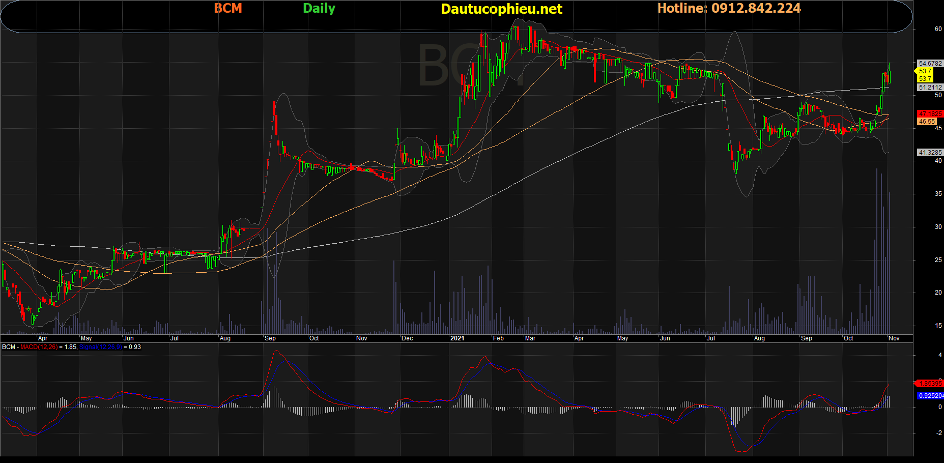 Đồ thị cổ phiếu BCM phiên giao dịch ngày 02/11/2021. Nguồn: AmiBroker
