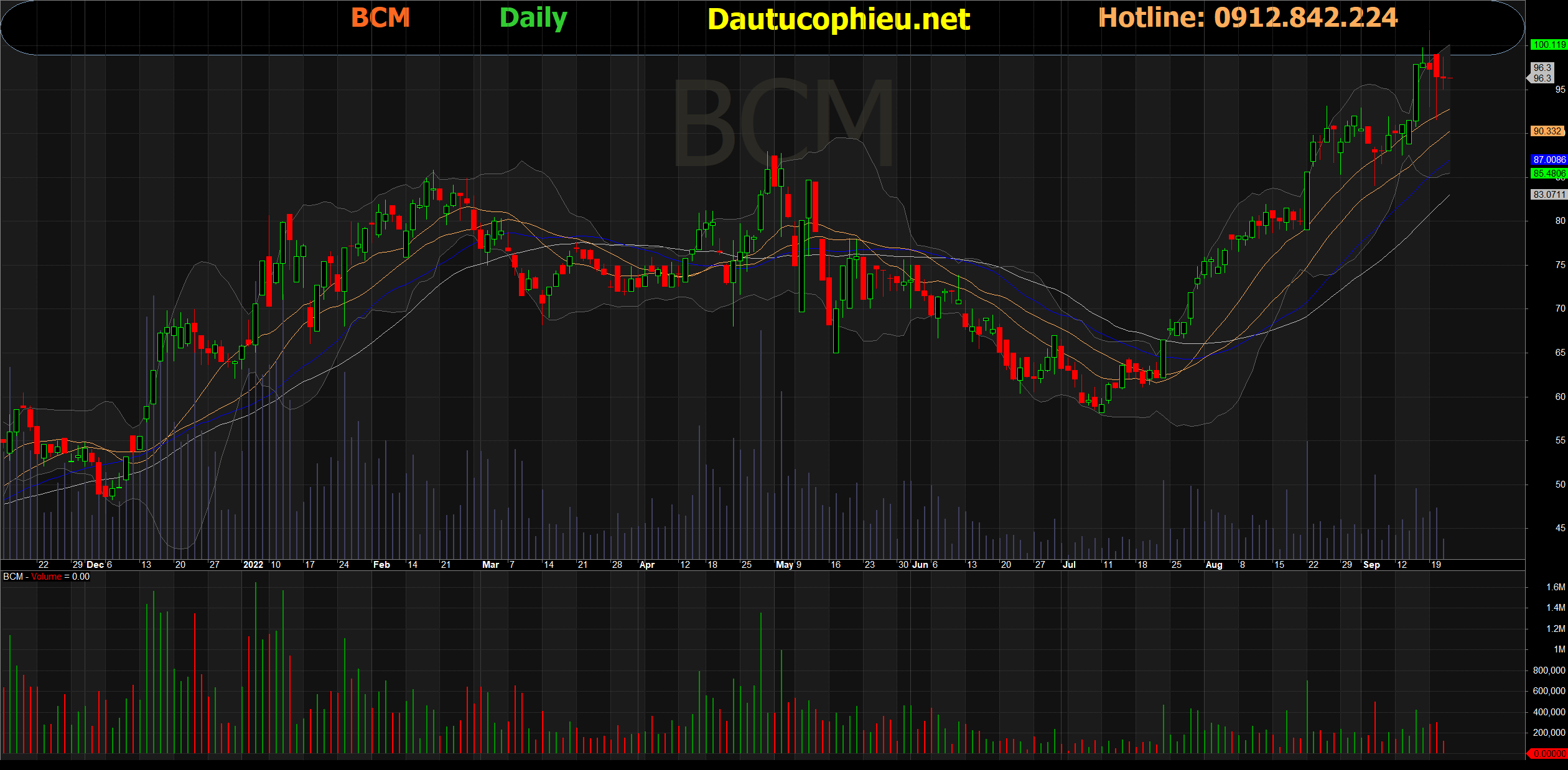 Đồ thị cổ phiếu BCM phiên giao dịch ngày 22/09/2022. Nguồn: AmiBroker