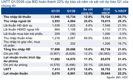 Bảng 1: Tóm tắt KQKD Q1/2026, BID