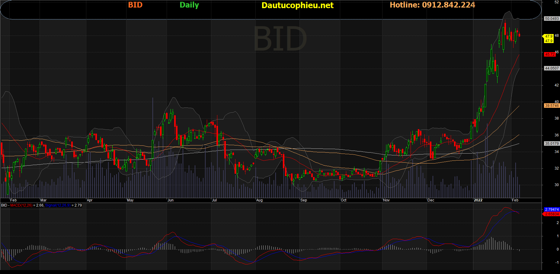 Đồ thị cổ phiếu BID phiên giao dịch ngày 11/02/2022. Nguồn: AmiBroker