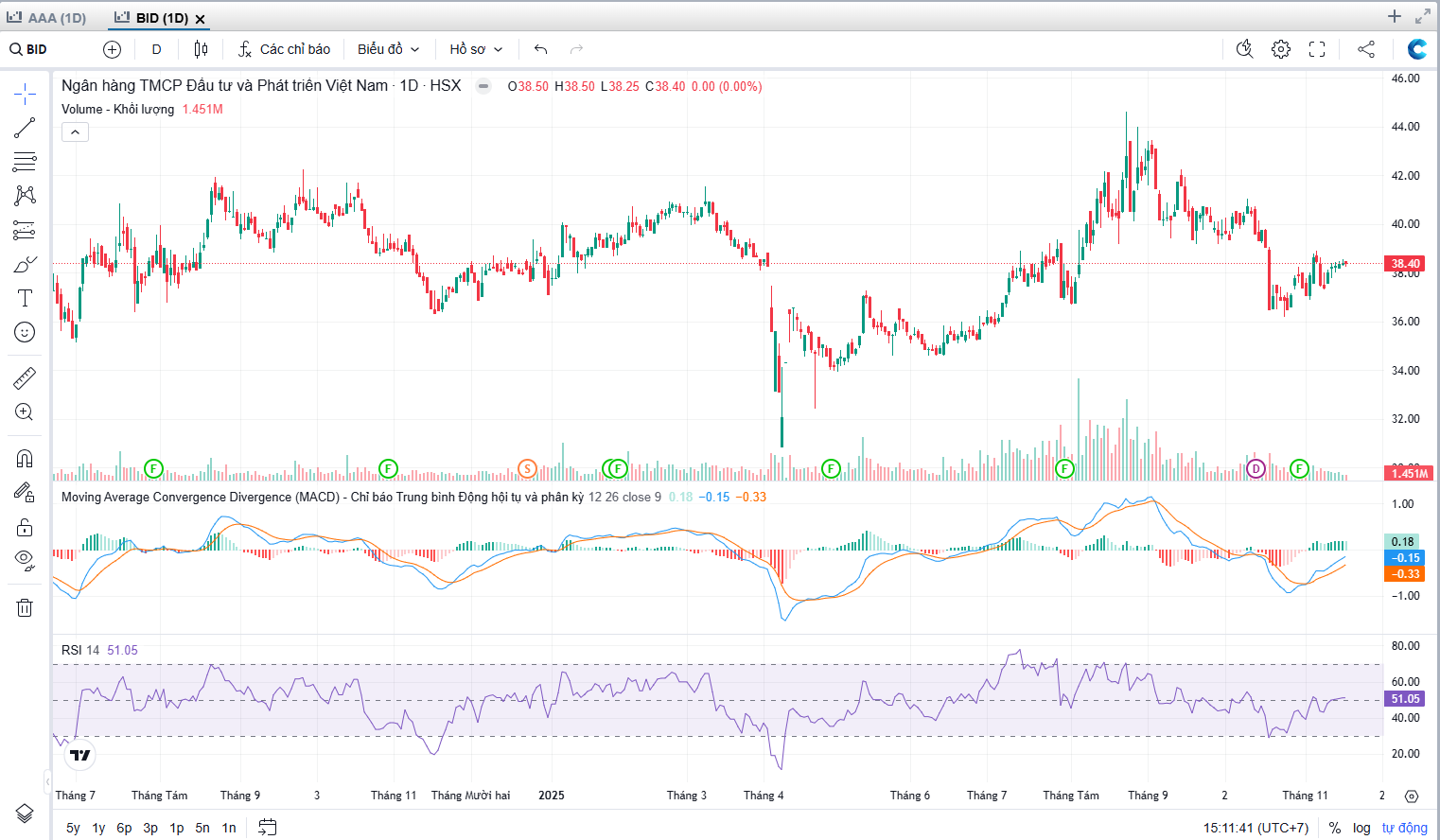 Đồ thị cổ phiếu BID phiên giao dịch ngày 18/11/2025