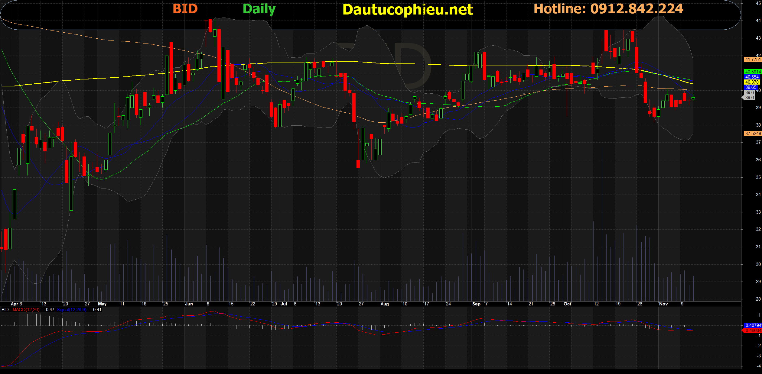Đồ thị cổ phiếu BID phiên giao dịch ngày 12/11/2020. Nguồn: AmiBroker