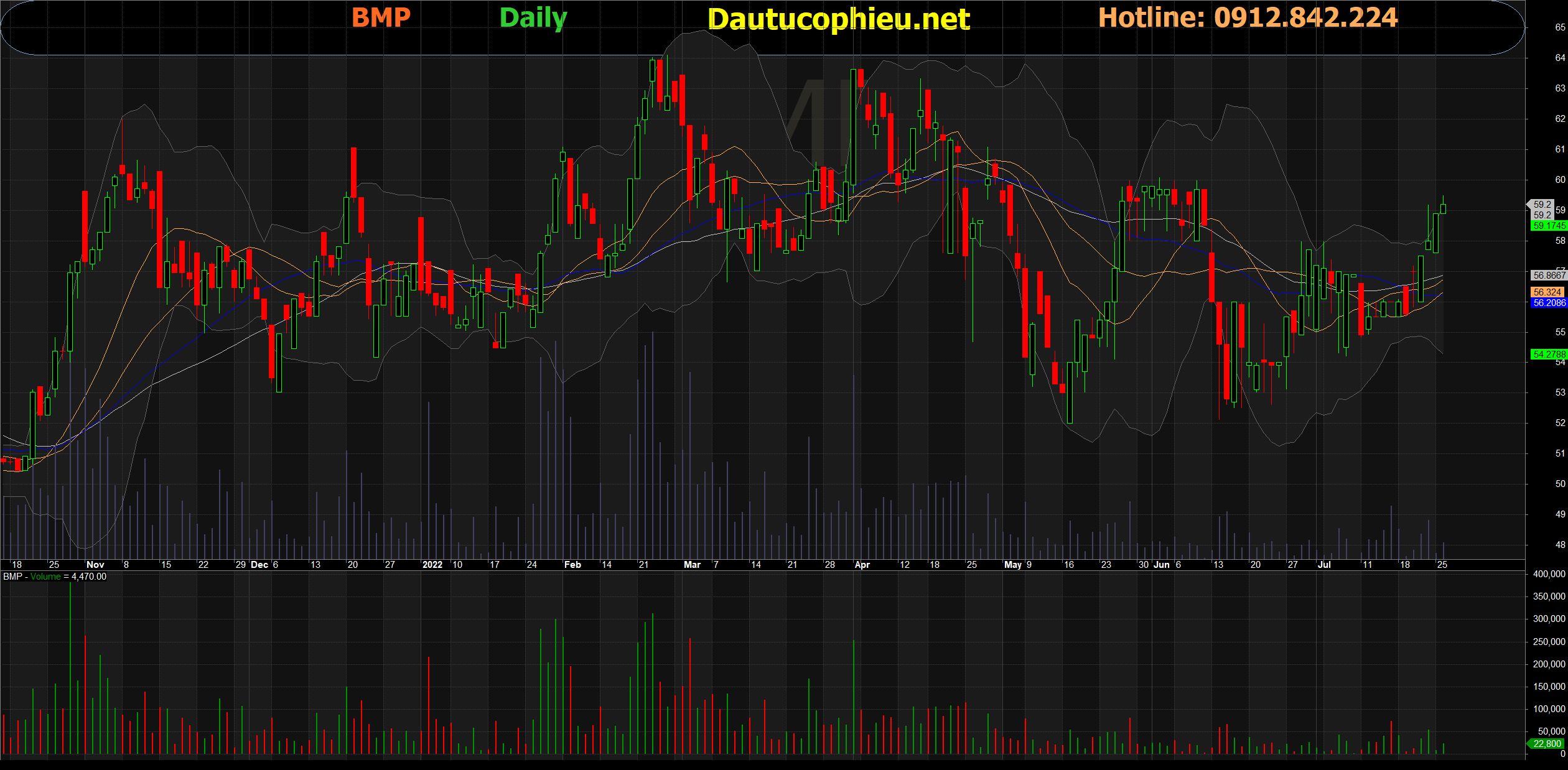 Đồ thị cổ phiếu BMP phiên giao dịch ngày 26/07/2022. Nguồn: AmiBroker