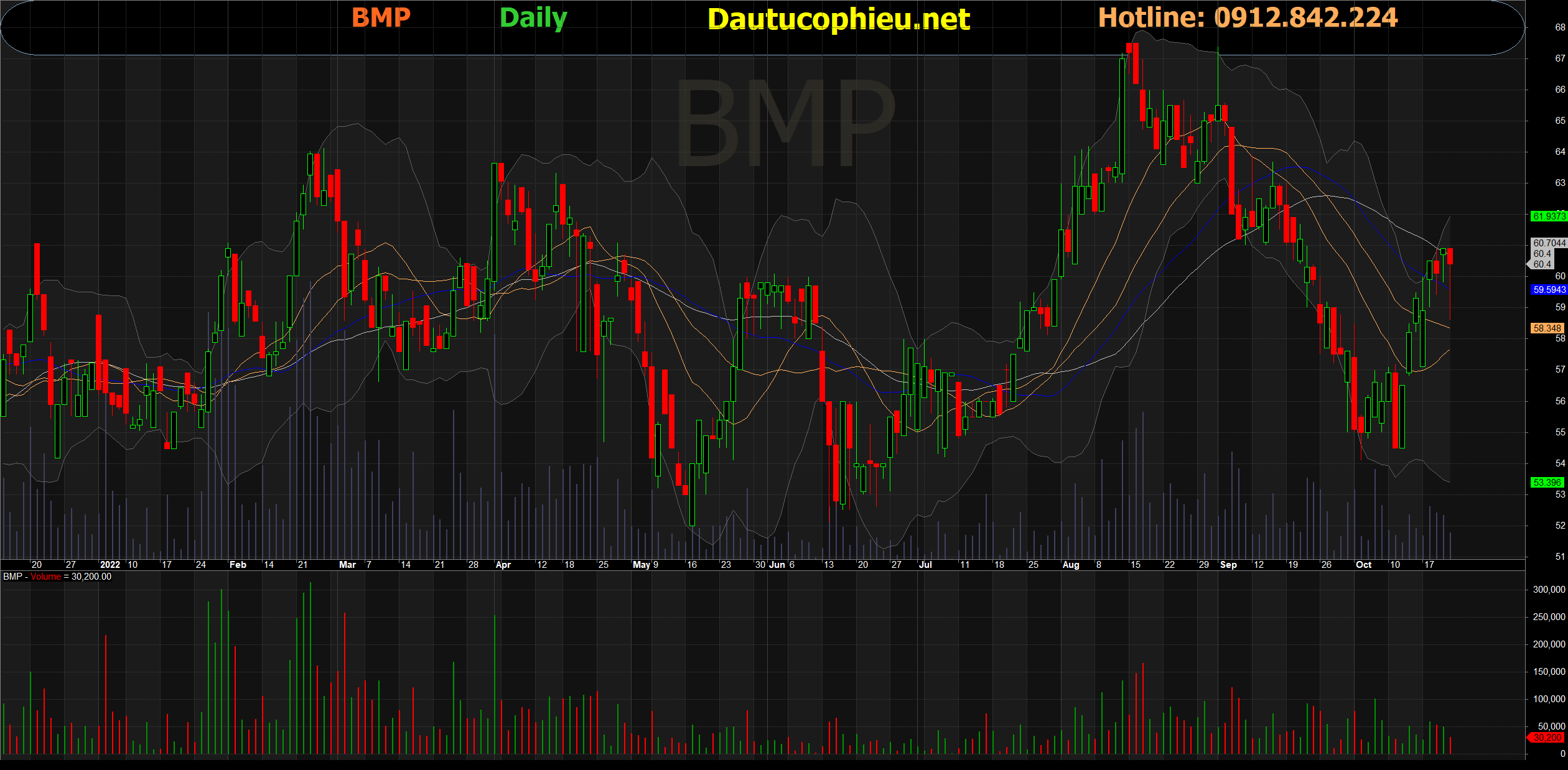 Đồ thị cổ phiếu BMP phiên giao dịch ngày 2110/2022. Nguồn: AmiBroker