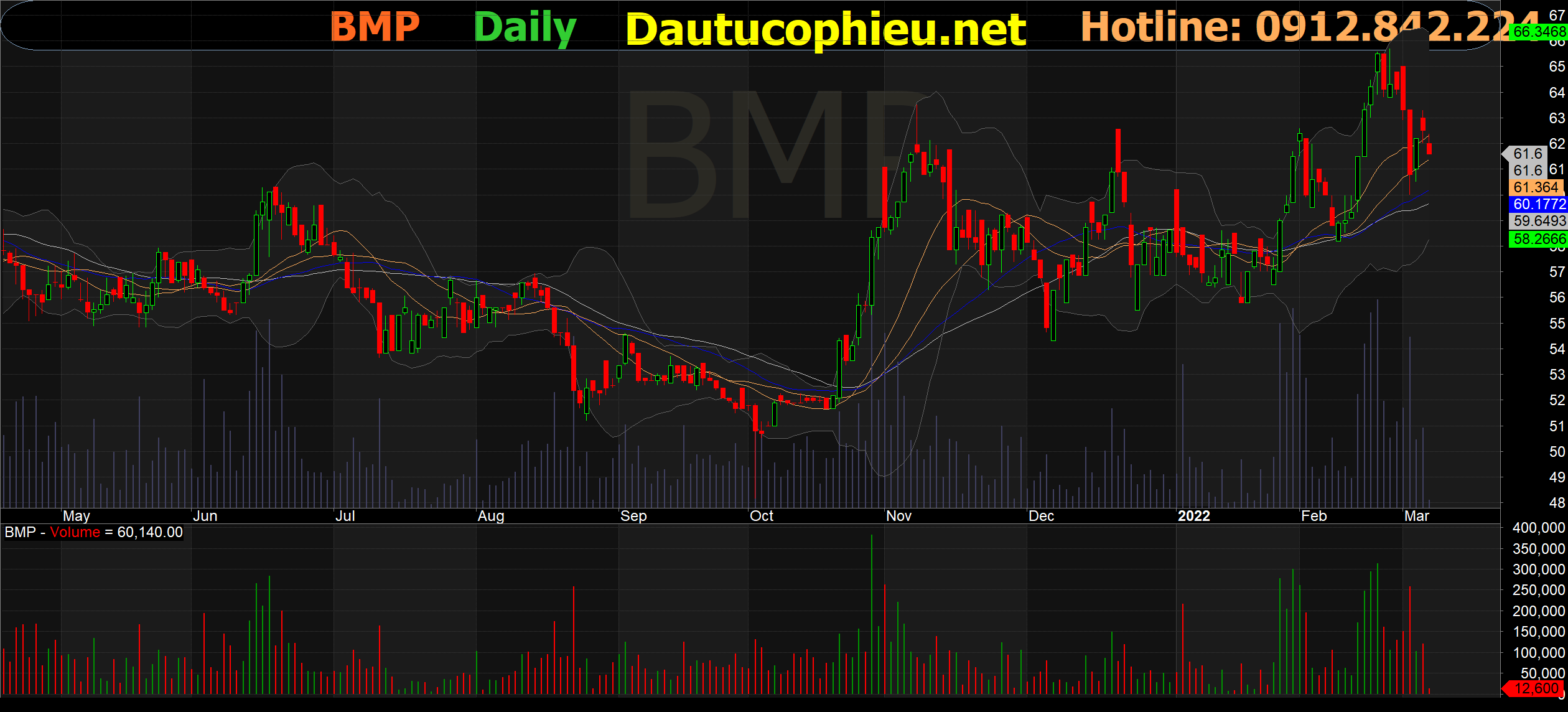 Đồ thị cổ phiếu BMP phiên giao dịch ngày 07/03/2022. Nguồn: AmiBroker