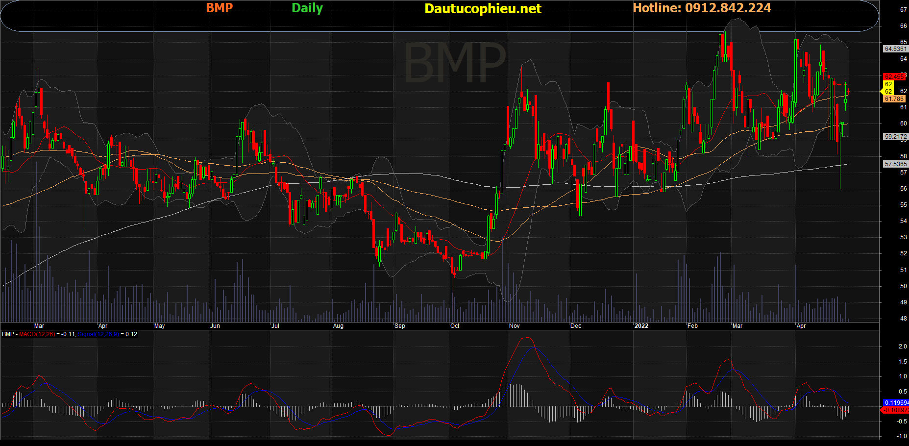 Đồ thị cổ phiếu BMP phiên giao dịch ngày 29/04/2022. Nguồn: AmiBroker