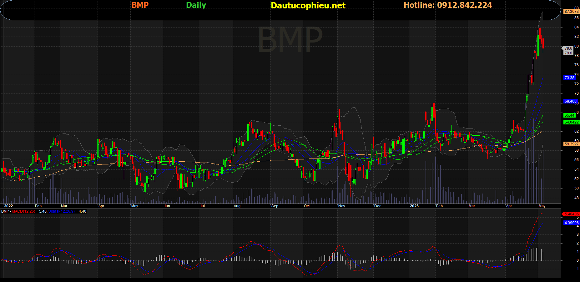 Đồ thị cổ phiếu BMP phiên giao dịch ngày 09/05/2023. Nguồn: AmiBroker