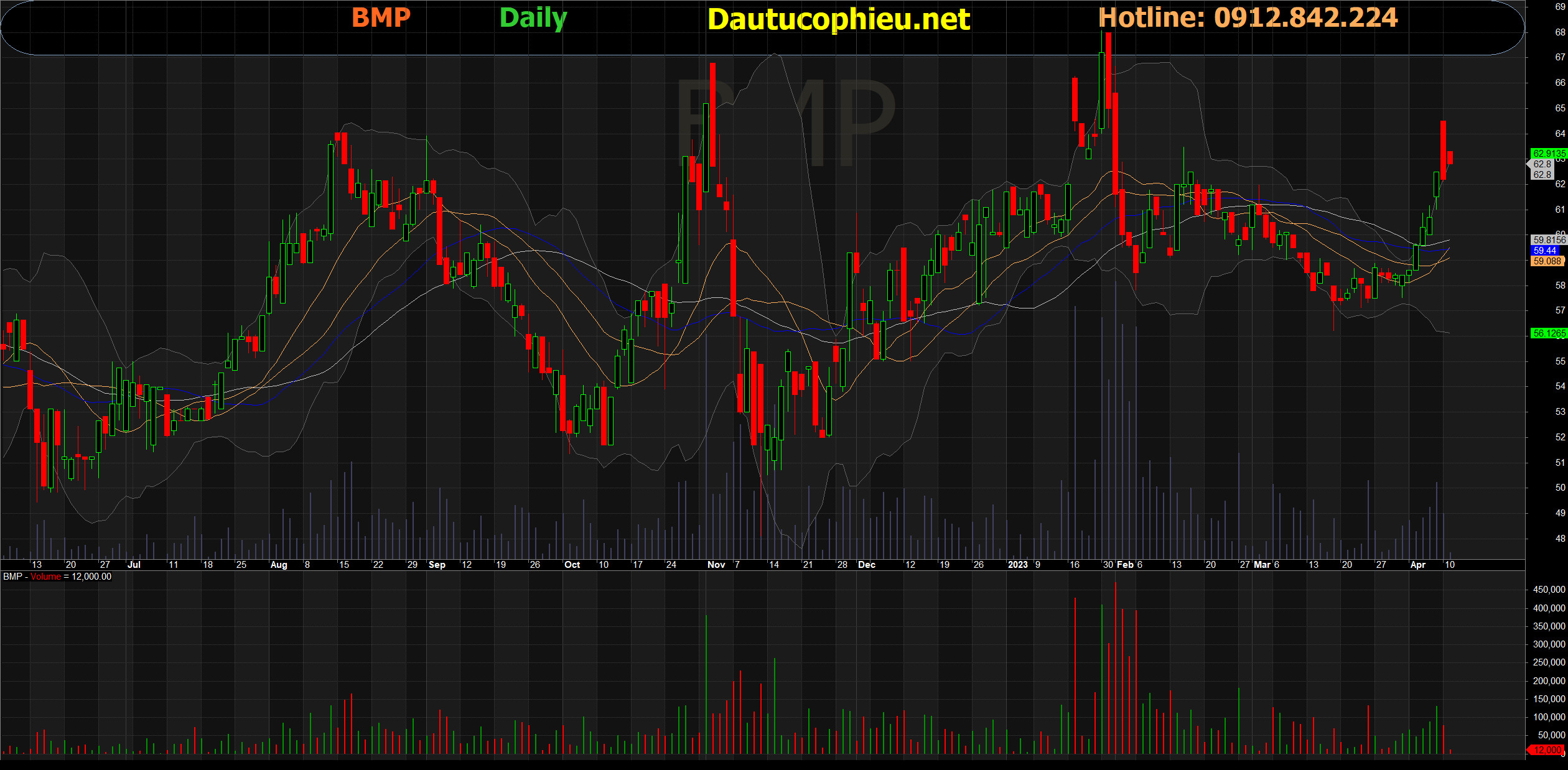 Đồ thị cổ phiếu BMP phiên giao dich ngày 12/04/2023. Nguồn: AmiBroker