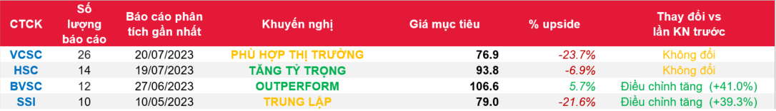 - Ở Cập nhật gần đây nhất, BVSC khuyến nghị Outperform với mức giá mục tiêu là 106.593 đồng/cp. Ở mức giá hiện tại, mức upside là 4,9%, và suất cổ tức dự báo là 11,8%. Cùng với KQKD Q2 khởi sắc, giá cổ phiếu tăng mạnh gần đây, BVSC đang xem xét lại dự báo, khuyến nghị và giá mục tiêu.