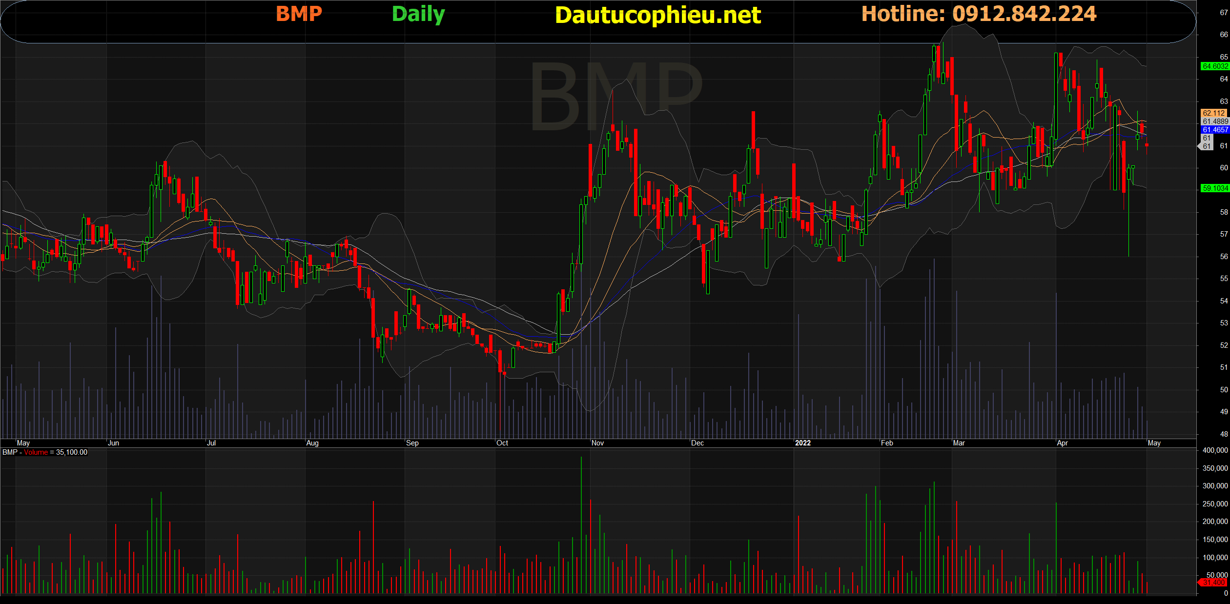 Đồ thị cổ phiếu BMP phiên giao dịch ngày 04/05/2022. Nguồn: AmBroker
