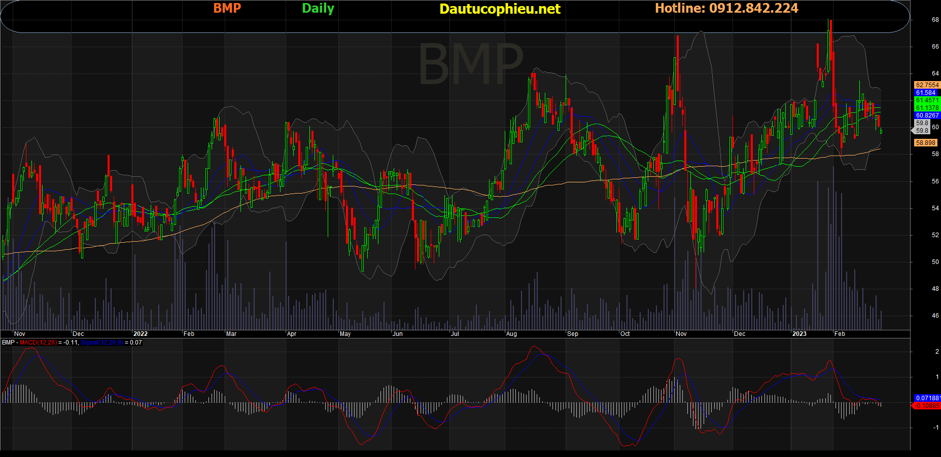 Đồ thị cổ phiếu BMP phiên giao dịch ngày 27/02/2023. Nguồn: AmiBroker