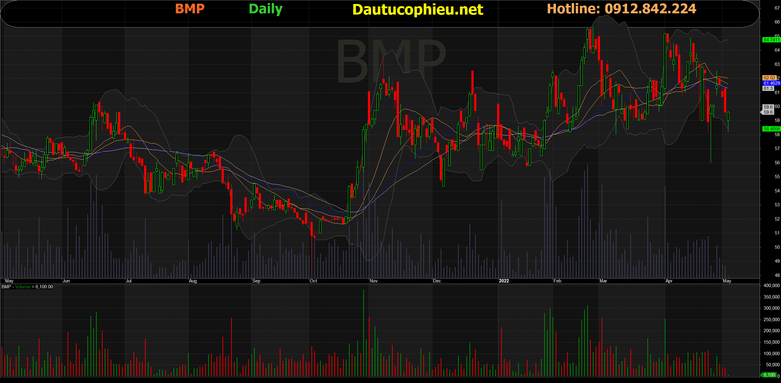 Đồ thị cổ phiếu BMP phiên giao dịch ngày 06/05/2022. Nguồn: AmiBroker