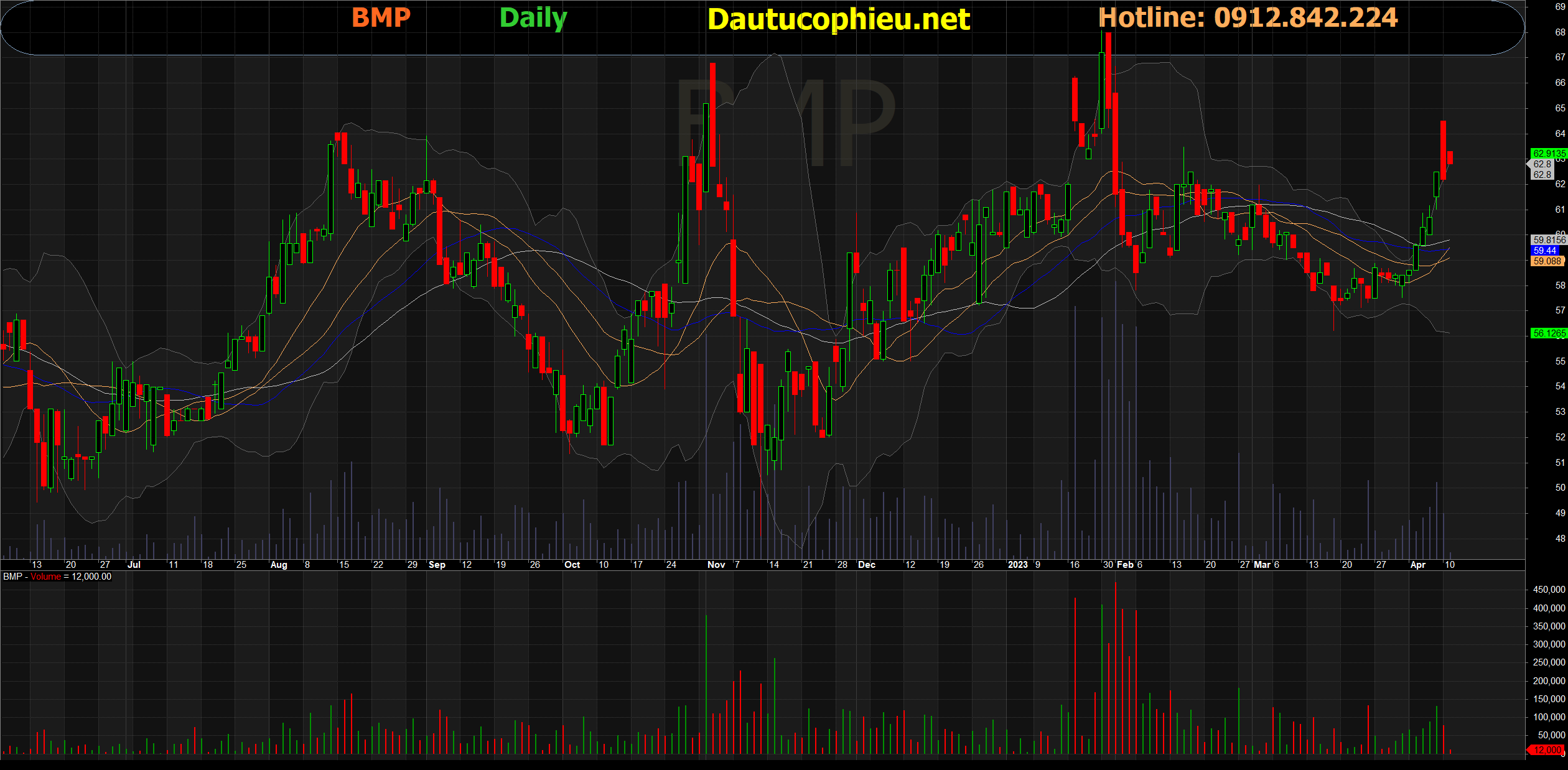 Đồ thị cổ phiếu BMP phiên giao dịch ngày 12/04/2023. Nguồn: AmiBroker
