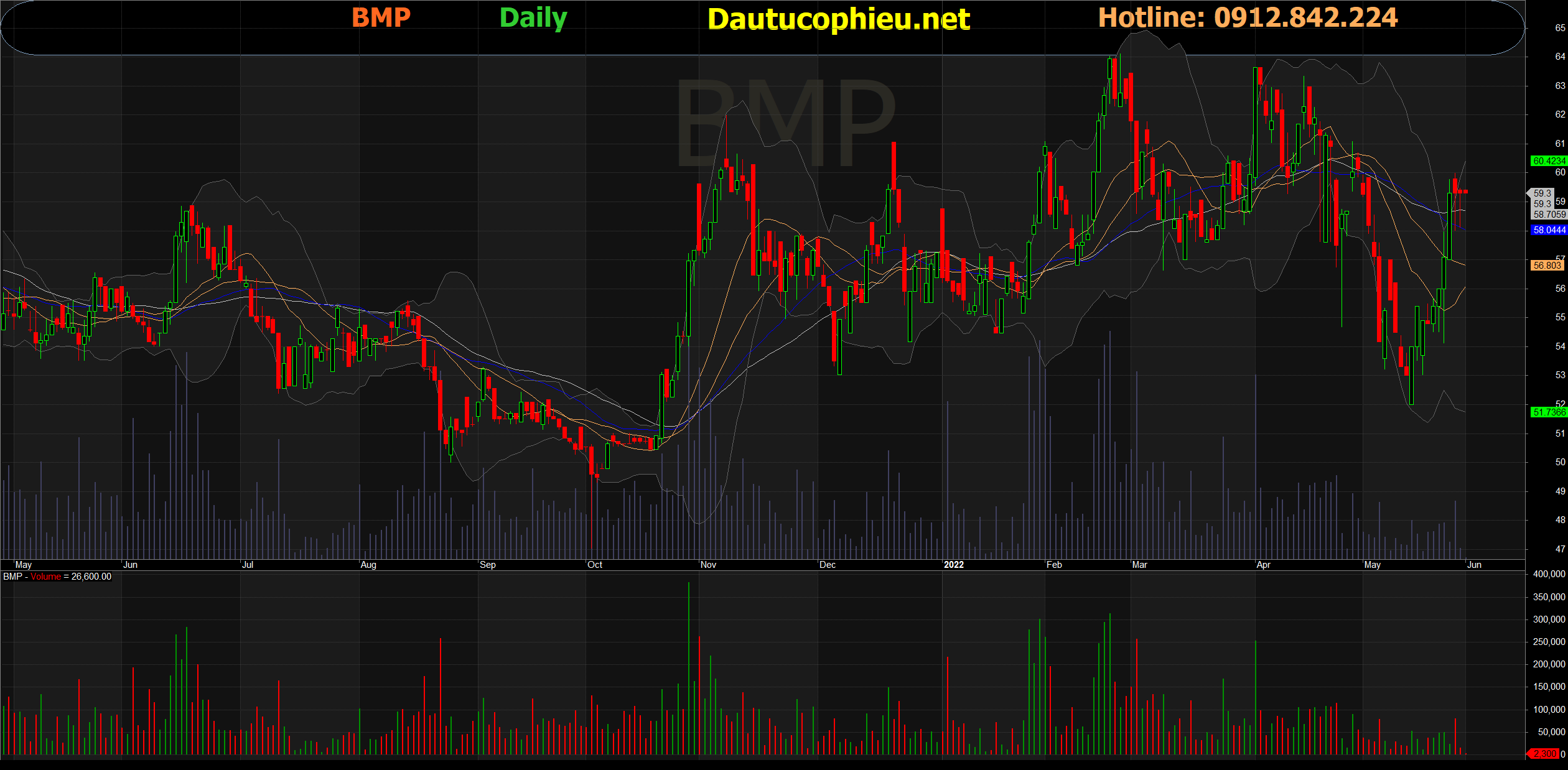 Đồ thị cổ phiếu BMP phiên giao dịch ngày 02/05/2022. Nguồn: AmiBroker