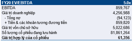 Chúng tôi chọn ra 15 doanh nghiệp cùng ngành trong khu vực tại Trung Quốc, Thái Lan, Hàn Quốc và Nhật Bản để so sánh với BMP. Chúng tôi áp dụng trung vị của các doanh nghiệp cùng ngành dựa trên EV/EBITDA năm 2020 là 5 lần để ước tính giá trị hợp lý của BMP. Dựa trên EV/EBITDA mục tiêu, chúng giá trị hợp lý của BMP là 61.356 đ/cp, theo đó tiềm năng tăng giá là 15,3% so với thị giá hiện tại ở mức 53.200đ. Tại giá trị hợp lý, BMP giao dịch với P/E năm 2020 là 11,8 lần.