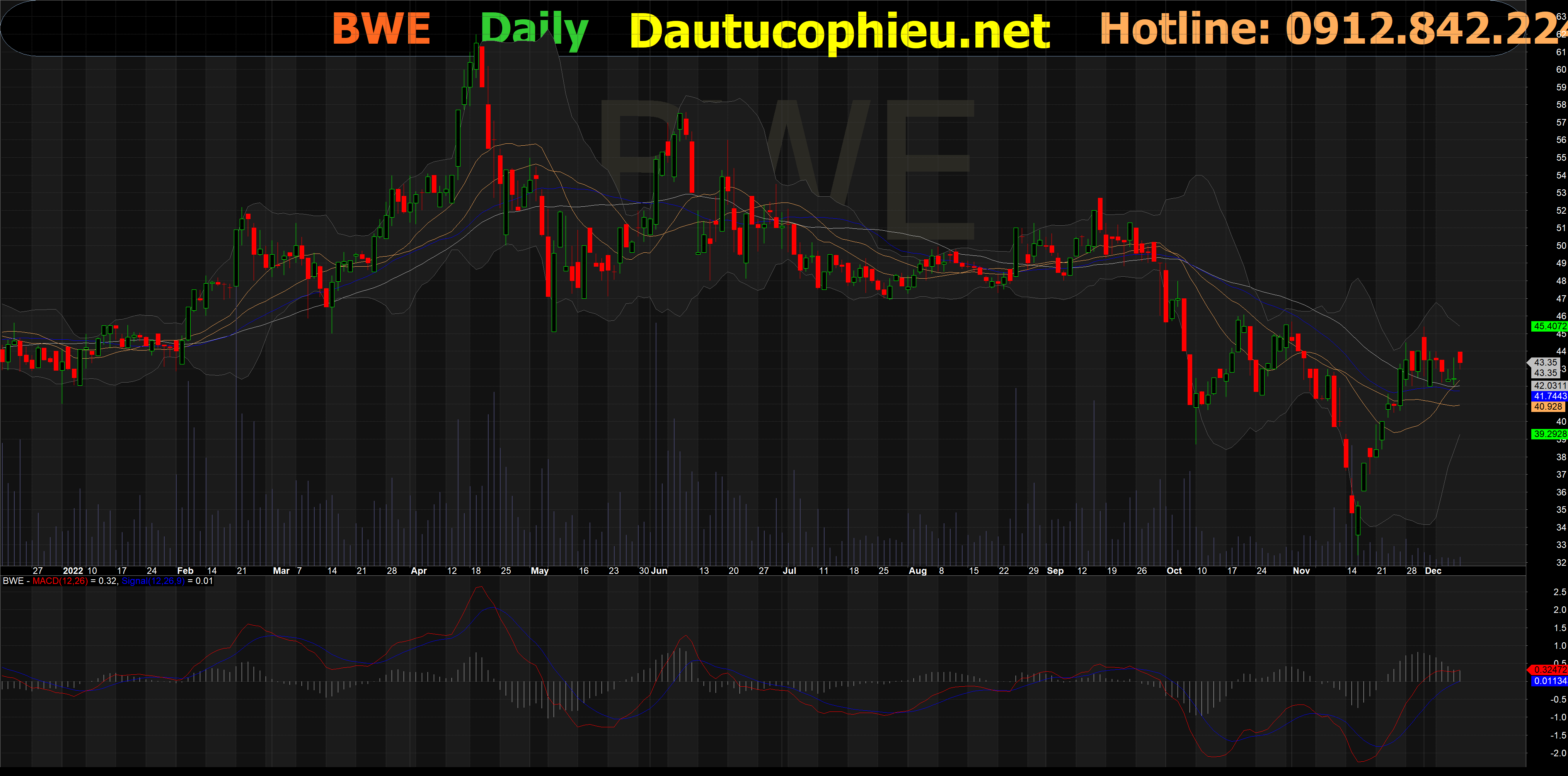 Đồ thị cổ phiếu BWE hiên giao dịch ngày 09/12/2022. Nguồn: AmiBroker