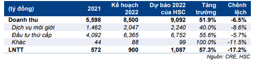 Bảng 1: Kế hoạch kinh doanh năm 2022, CRE