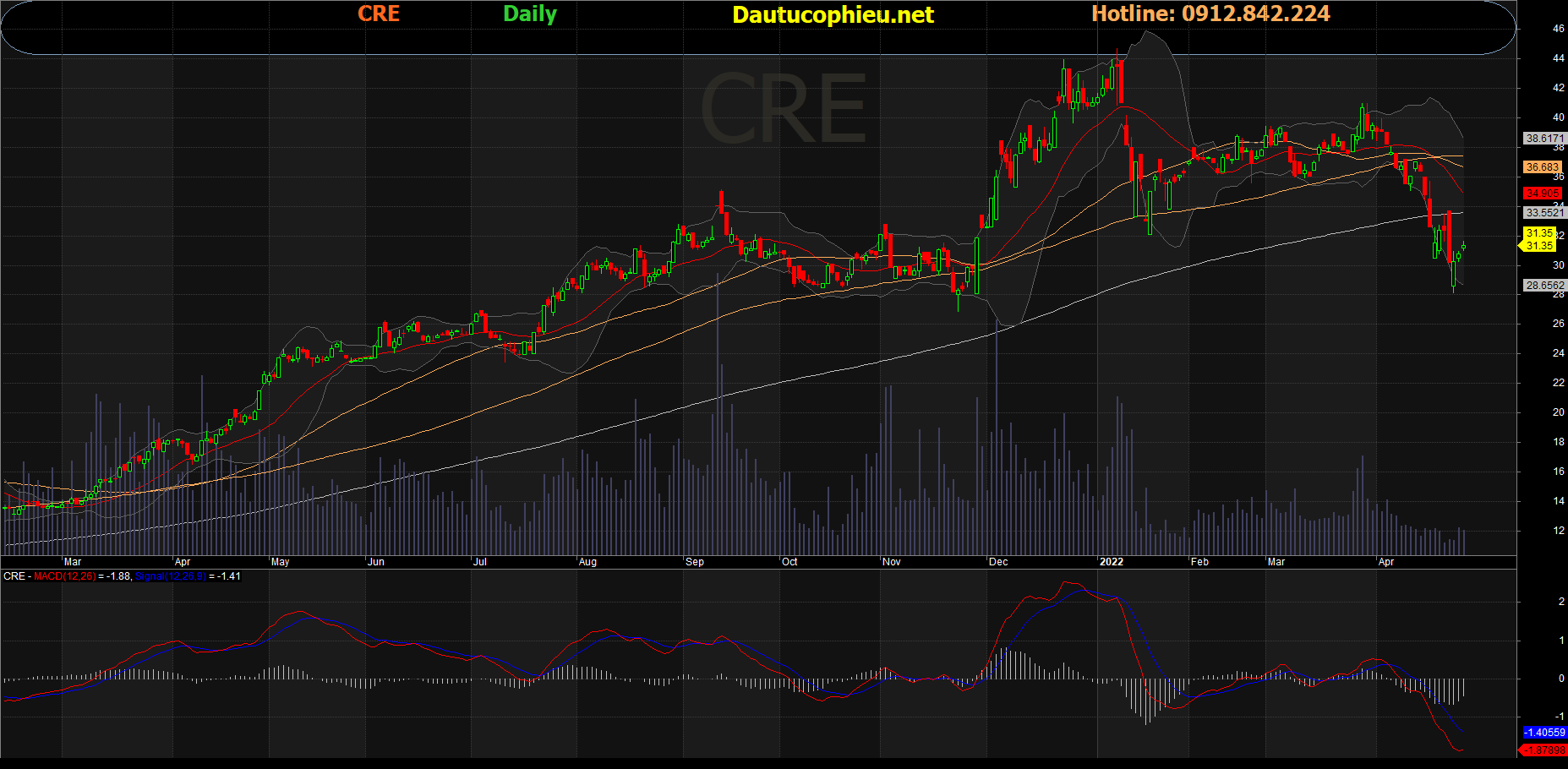 Đồ thị cổ phiếu CRE phiên giao dịch ngày 28/04/2022. Nguồn: AmiBroker