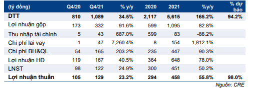 Bảng 1: KQKD Q4/2021 & cả năm 2021, CRE