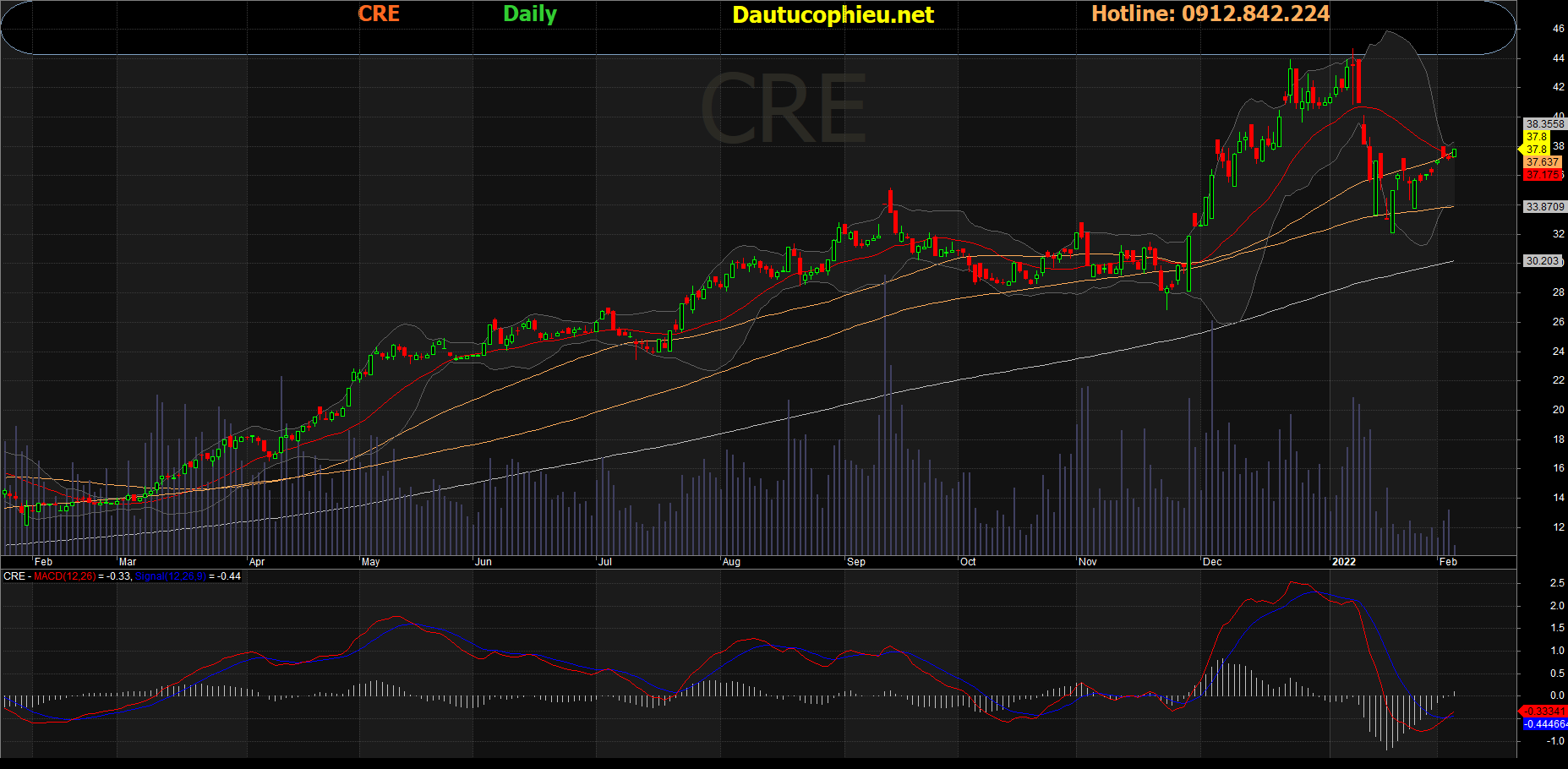 Đồ thị cổ phiếu CRE phiên giao dịch ngày 10/02/2022. Nguồn: AmiBroker