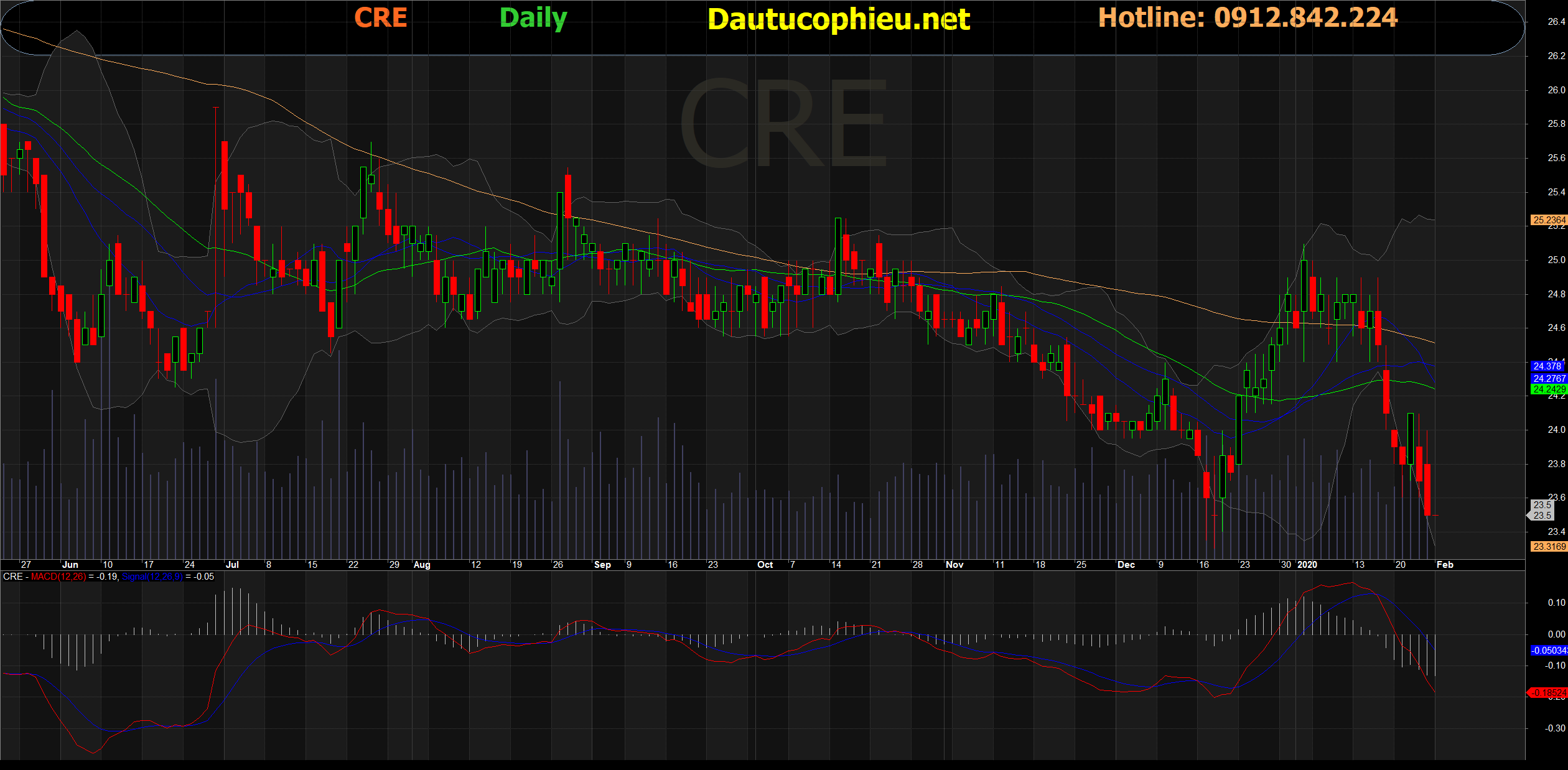 Đồ thị cổ phiếu CRE phiên giao dịch ngày 31.01.2019. Nguồn: AmiBroker.