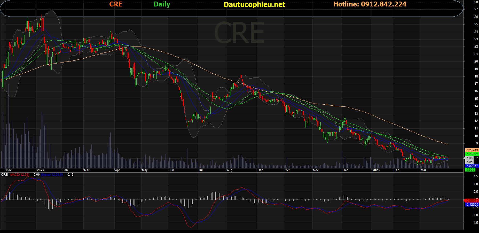 Đồ thị cổ phiếu CRE phiên giao dịch ngày 30/03/2023. Nguồn: AmiBroker