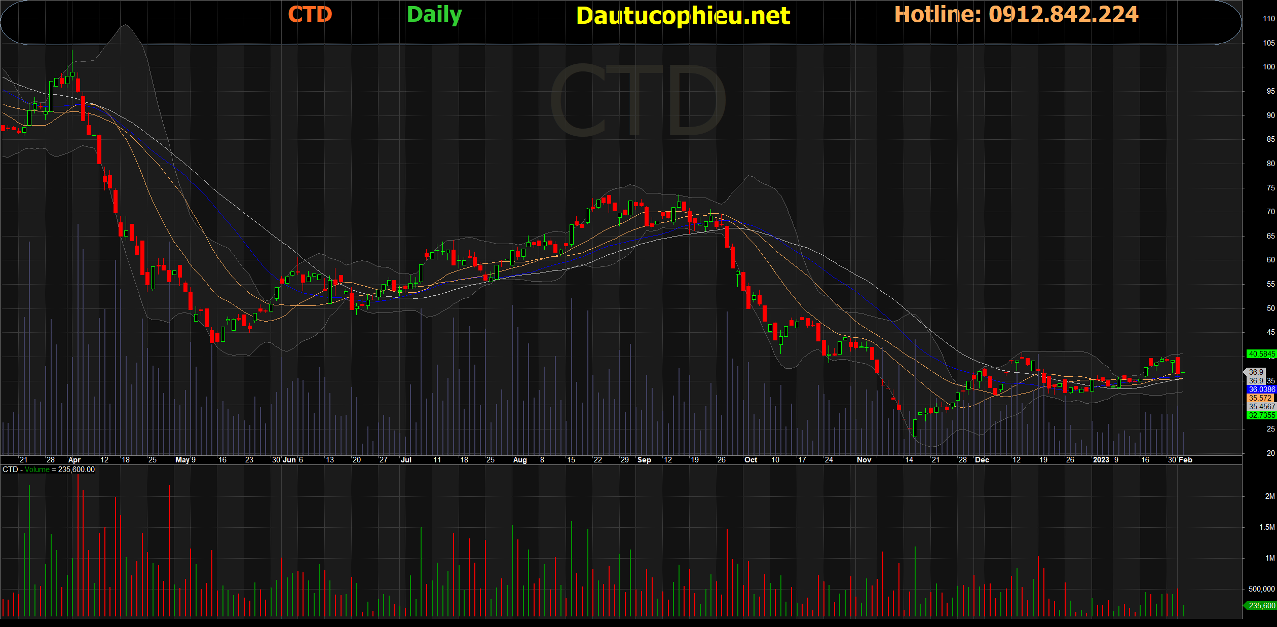 Đồ thị cổ phiếu CTD phiên giao dịch ngày 01/02/2023. Nguồn: AmiBroker