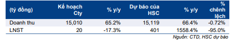 CTD đặt kế hoạch kinh doanh năm 2022 với doanh thu thuần đạt 15 nghìn tỷ đồng (tăng trưởng 65,2%) và lợi nhuận thuần là 20 tỷ đồng (giảm 17,3%). Kế hoạch doanh thu sát với dự báo của HSC, nhưng kế hoạch lợi nhuận thuần thấp hơn đáng kể so với dự báo của chúng tôi. HSC cho rằng tỷ suất lợi nhuận gộp giảm và trích lập dự phòng các khoản phải thu khó đòi tăng là những nguyên nhân chính. Các công ty xây dựng đang phải đối mặt với áp lực rất lớn từ chi phí vật liệu xây dựng tăng cao và sự cạnh tranh gay gắt làm giảm tỷ suất lợi nhuận. Chúng tôi đang chờ đợi thêm thông tin tại ĐHCĐ dự kiến tổ chức vào ngày 25/4/2022.