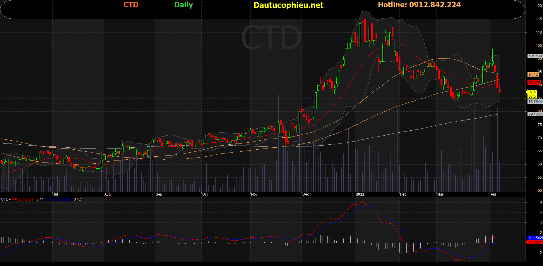 Đồ thị cổ phiếu CTD phiên giao dịch ngày 07/04/2022. Nguồn: AmiBroker
